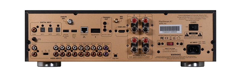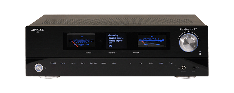 De Advanced Paris A1 netwerkreceiver zit daar weer onder of naast. Deze volledig metalen receiver biedt veel, maar 2x 50 Watt bij 6 ohm is een stuk minder vermogen aangeboden dan hierboven bij de versterker A7 en A5, waarbij de Advanced Paris A7 zelfs aan waarden kan komen van 2×180 Watt bij 4 Ohm en de A5 netwerkreceiver 2x 130 Watt bij 4 Ohm. Ook ontbreken de vermogen meters aan de voorzijde in het display. Wel is een HDMI-Arc aansluiting op de achterzijde te vinden. Geen High Bias voor klasse A mogelijkheid, maar door de fijne streamer ingebouwd en de mooie app en de fantastische afwerking is het een goede versterker voor het budget. Advance Paris heeft de Playstream A1 voorzien van drie analoge lijningangen waarbij de AUX-ingang is om te schakelen naar een phono MM ingang. U mist dus de MC schakeling, maar wellicht heeft u deze niet nodig.