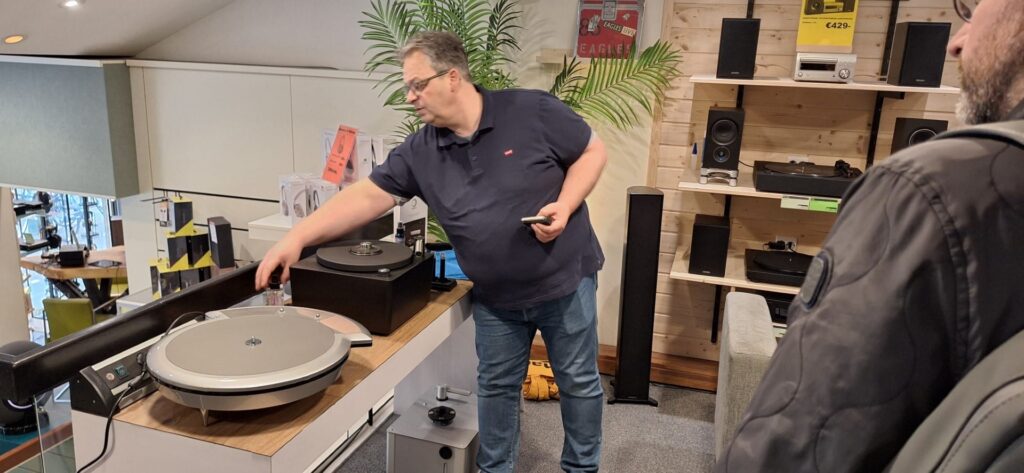Dennis onze platenspeler expert van Hifi Overgaauw Leiden, hier voor de demonstratie op onze platenspeler afdeling, weet er heel veel van en neemt de presentatie voor zijn rekening. Tonar is zelfs in maart voor deze dag naar Leiden gekomen. Komt u donderdagavond 22 mei ook?