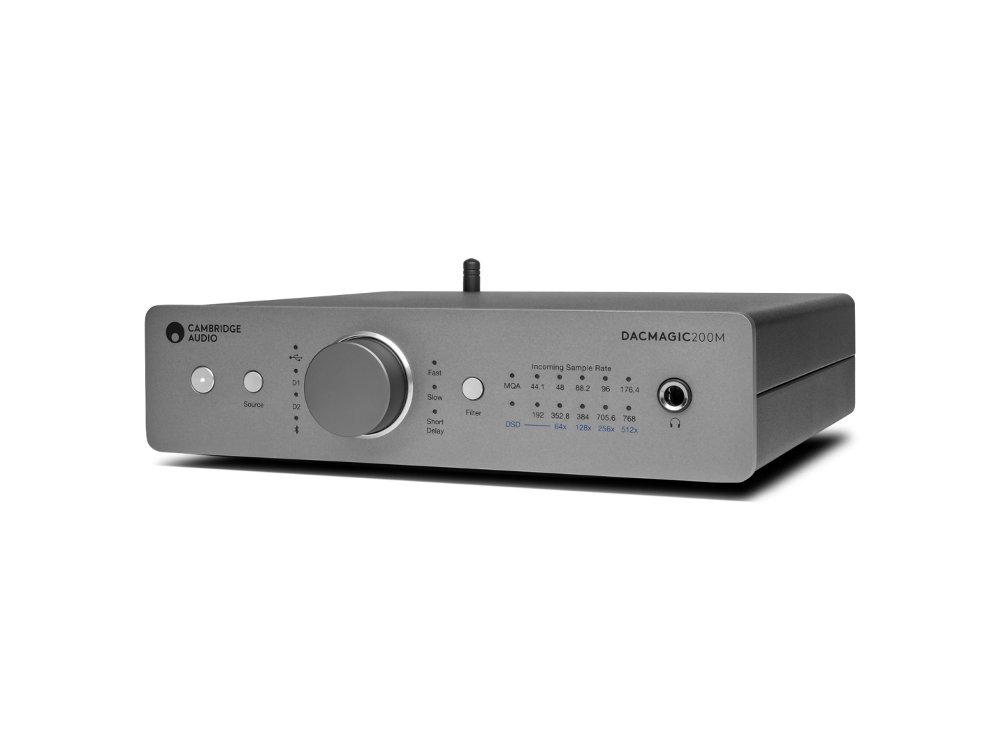 De Cambridge Audio DacMagic 200M is een zeer hoogwaardieg digitaal naar analoog converter en beschikt over een dubbele Sabre ESS ES9028Q2M DAC’s en verwerkt daarmee gemakkelijk digitale audiobestanden tot 32bit / 768kHz of  DSD512. Hij ondersteunt tevens MQA zodat je luistert naar door artiesten goedgekeurde audio van studiokwaliteit. Eem digitale optische, digitale coaxiale en USB-ingang staan tot je beschikking voor het aansluiten van cd-spelers, gameconsoles, audiostreamers, laptops of andere digitale audiobronnen. Ook is er een ingebouwde Bluetooth aptX ontvanger aanwezig voor het direct rechtstreeks aanbieden van digitale audiobestanden vanaf smartphone of tablet.