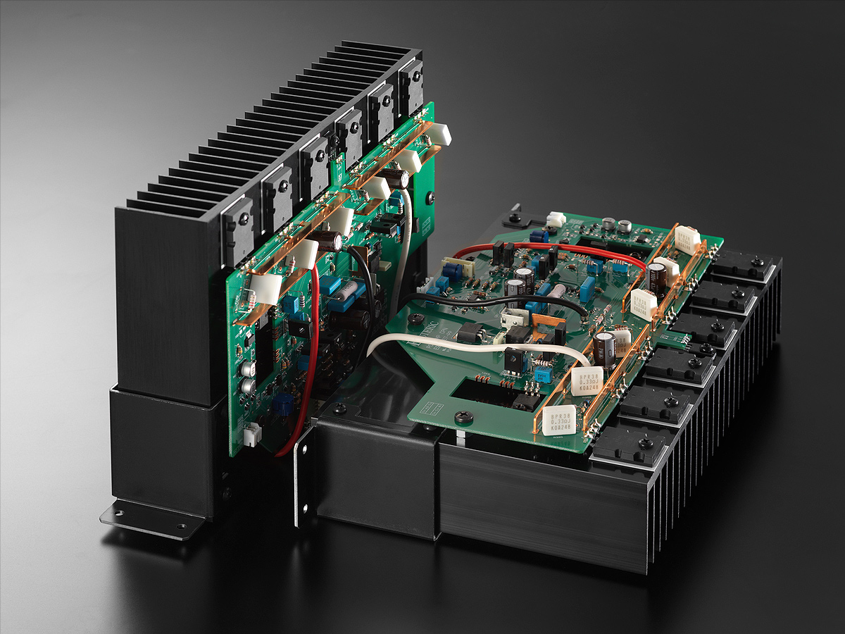 In de voeding zitten op maatgemaakte blok-condensatoren. Deze zijn van Grandioso-kwaliteit! Veel andere ontwikkelingsresultaten van het vlaggenschipmodel “Grandioso M1X” zijn gebruikt in deze Eindversterker. Het geheel zorgt voor een ongelooflijk nette eindversterker.