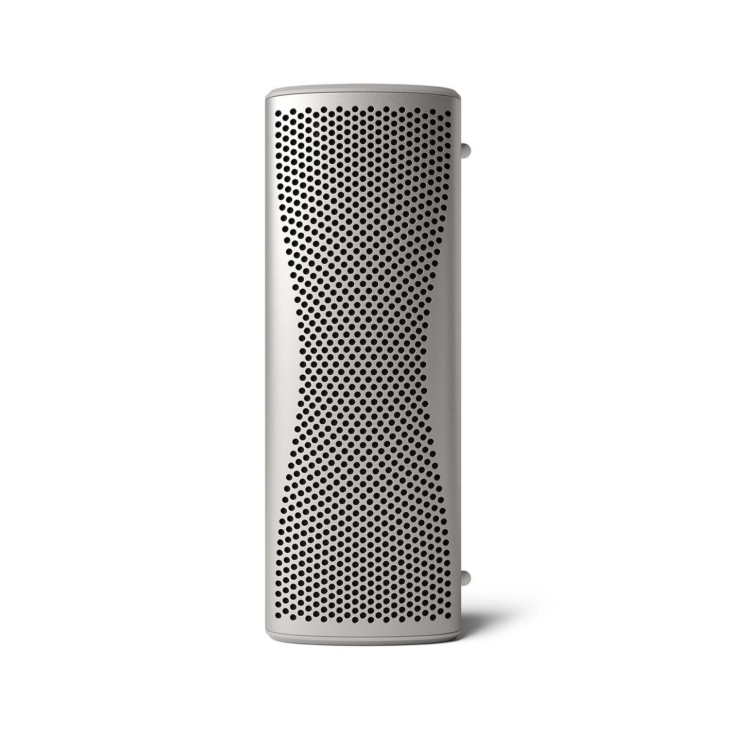 De KEF muo is een kleine draagbare bluetoothspeaker boordevol technieken van deze britse speaker bouwer. Muo is een ontwerp van Ross Lovegrove en vertaalt de sculpturele ambitie van KEF's Muon-luidsprekers naar een draagbaar meesterwerk.