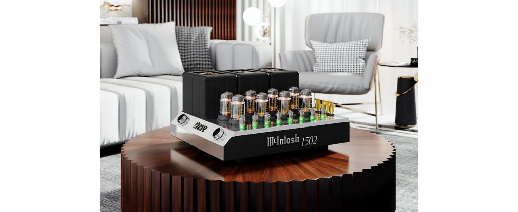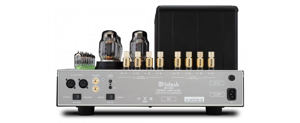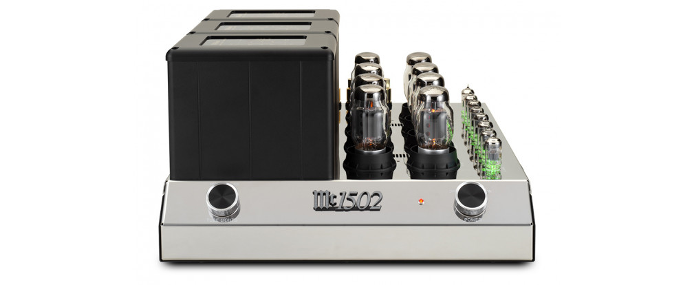 De McIntosh MC1502 stereo buizen eindversterker is een stereo-eind-versterker die is ontworpen voor home audio- en thuismuzieksystemen en die 150 Watt per kanaal produceert. De MC1502 wordt aangedreven door acht KT88-uitgangsvacuümbuizen, met vier toegewezen aan elk stereokanaal. Het heeft ook acht kleine signaalbuizen, bestaande uit vier 12AX7A en vier 12AT7 vacuümbuizen; twee van elk van deze vacuümbuizen zijn bestemd voor elk audiokanaal. De 12AX7A vacuümbuizen zijn voor de gebalanceerde en ingangsversterkers, terwijl de 12AT7-buizen voor de spannings- en driverversterkers zijn. Alle vacuümbuizen zijn bedekt met een 12-gauge roestvrijstalen draadkooi met een zwarte poedercoating. De KT88-vacuümbuisaansluitingen zijn voorzien van Air-Pipe-koeling aan hun basis om een ​​lange levensduur te vergemakkelijken. De acht signaalbuisaansluitingen hebben een keramische basisconstructie met vergulde contacten, die bescherming bieden tegen atmosferische vervuiling. Alle vacuümbuizen zitten bovenop het nauwkeurig gevormde roestvrijstalen chassis dat is gepolijst tot een spiegelende afwerking.