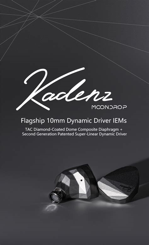 Een vlaggenschipmodel 10mm dynamic driver van Moondrop: Kadenz. De perfecte combinatie tussen geluid en looks. De op diamant geinspireerde behuizing is erg indrukwekkend om te zien en heeft een premium feel. Ook zit er een speciale TAC diamant coating op die het oortje een mooie glinster geven. Van binnen zit er enkel een 10mm dynamische driver die voor al geluid zorgt. En dat geluid is erg mooi; Typisch Moondrop, Diepe bassen, heldere stemmen en natuurlijke soundstage.