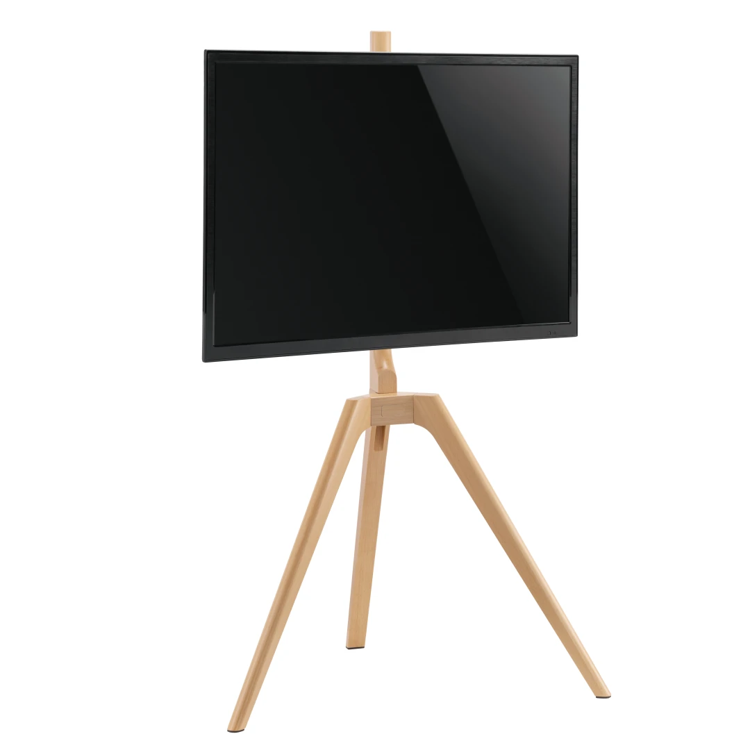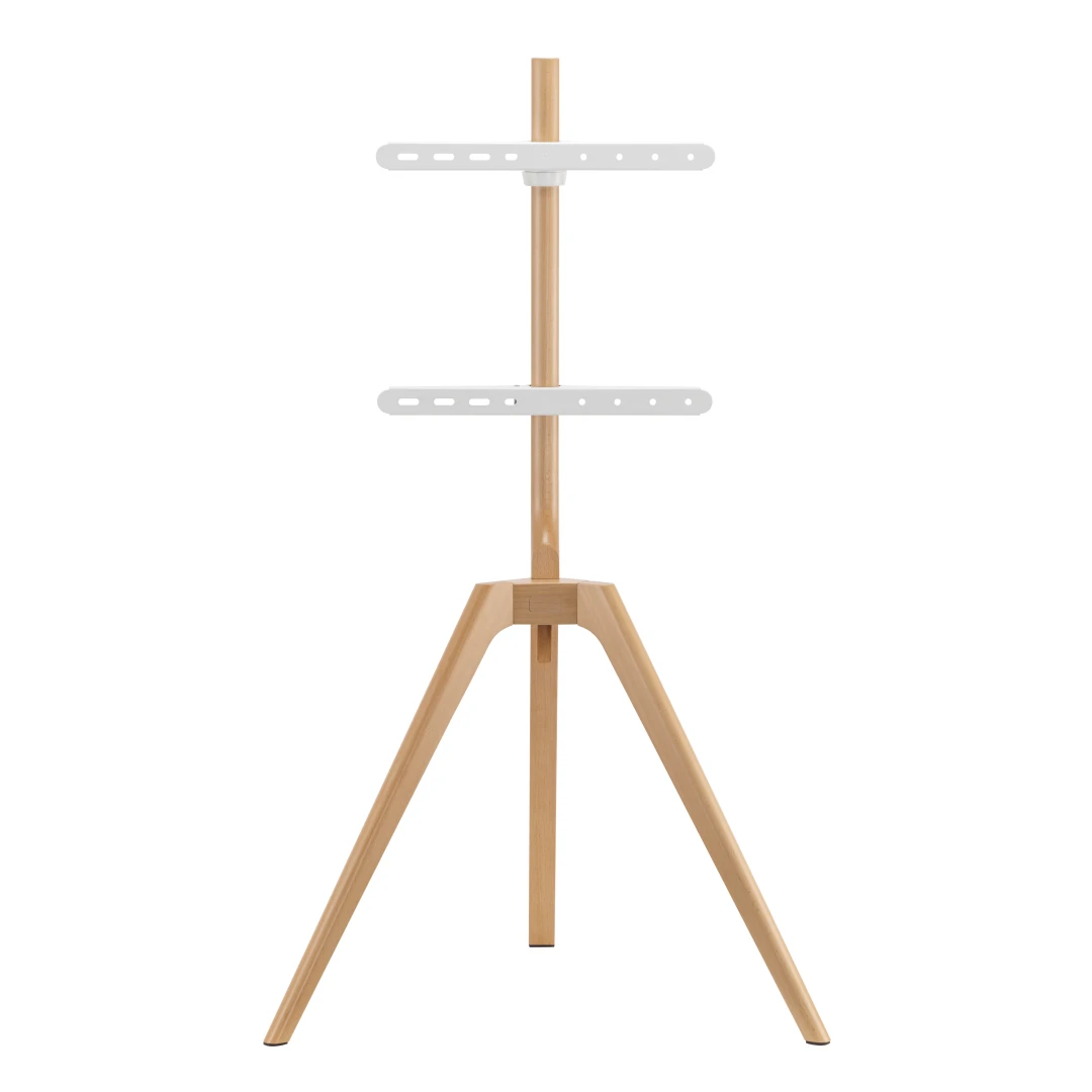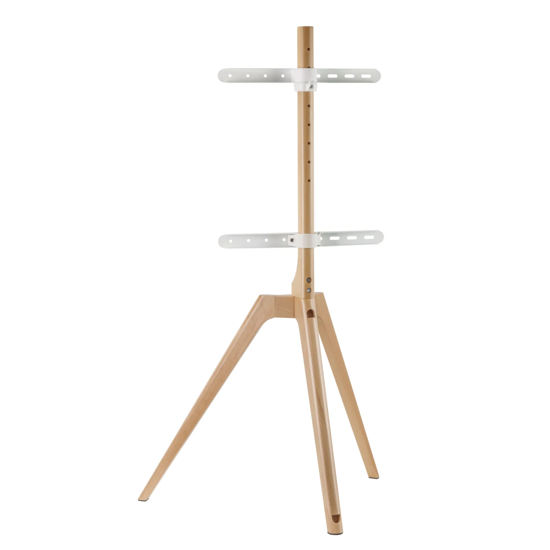 De Norstone Pro Vision Wood herdefinieert de tv-standaard door esthetiek en functionaliteit te combineren in een strak design, geïnspireerd op een schildersezel. Met zijn massief houten driepoot en afwerking in mat wit en beukenhout verandert deze standaard uw televisie in een echt decoratief object. Hij is compatibel met televisies tot 65 inch en heeft een maximaal draagvermogen van 40 kg. De standaard biedt een verstelbare hoogte en een uitgebreide VESA-compatibiliteit (200×200, 300×200, 400×200, 300×300, 400×300 tot 400×400 mm), waardoor hij perfect past in elk modern interieur.