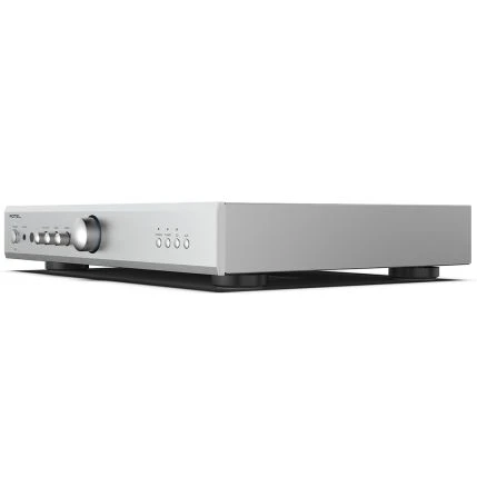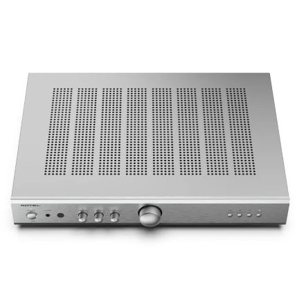 Met een vermogen van 40 watt per kanaal bij 4 ohm levert de A8 voldoende kracht voor de meeste luidsprekers, terwijl de hoogwaardige componenten zorgen voor een nauwkeurige en muzikale weergave. De versterker beschikt over drie analoge RCA-ingangen en een Moving Magnet phono-ingang voor het aansluiten van een platenspeler. Voor privé luisteren is er een 3,5 mm hoofdtelefoonaansluiting aan de voorzijde. De A8 van Rotel is voorzien van bas-, treble- en balansregelaars op het voorpaneel, evenals een infrarood afstandsbediening voor eenvoudige bediening. Met zijn slanke ontwerp en keuze uit zwarte of zilveren afwerking past de A8 moeiteloos in elke luisteromgeving.
