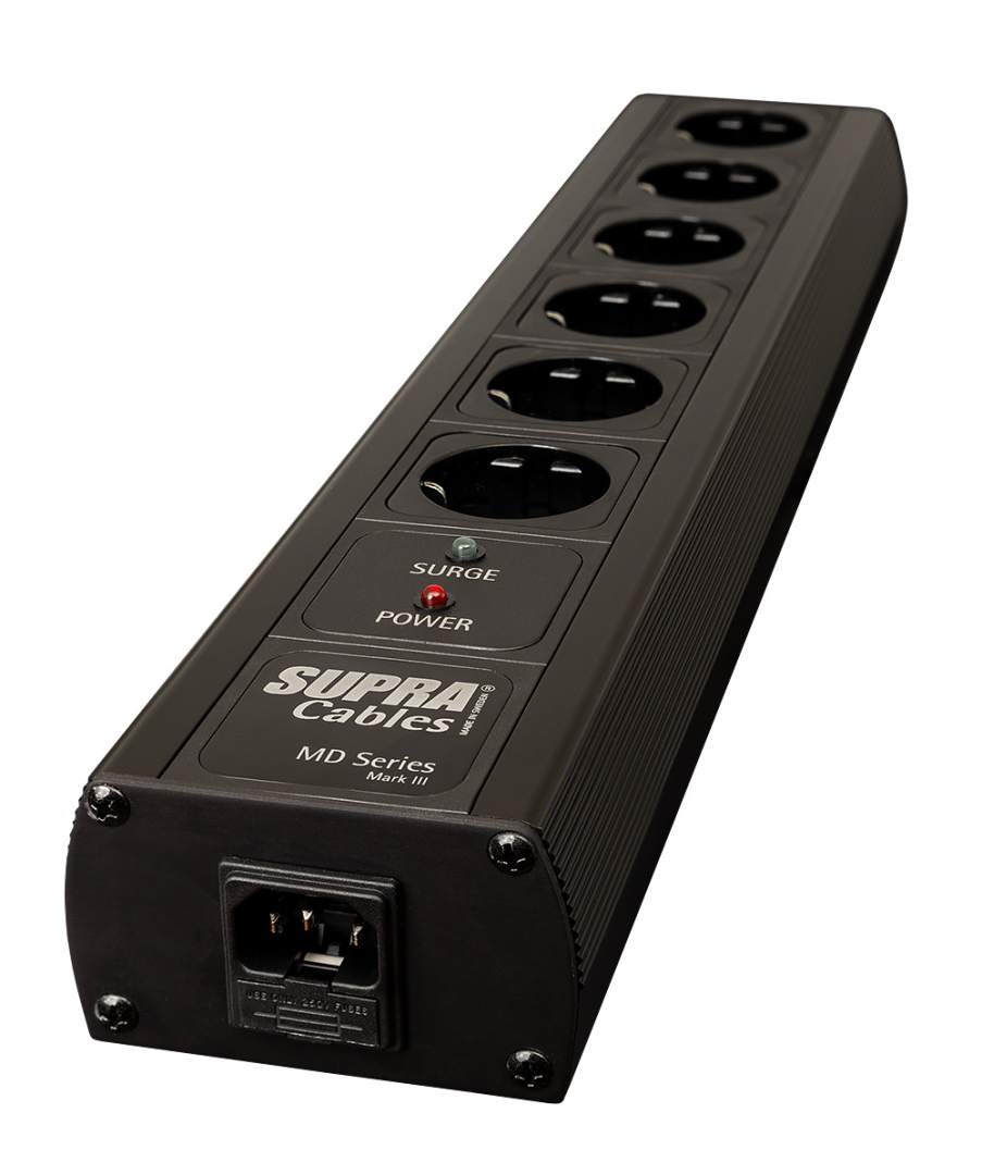 De Supra MD06/SP-SPC is een afgeschermd, aluminium stekkerblok. De verzilverde bedrading aan de binnenkant en de zwarte uitvoering zijn het beste verlengstuk voor Supra’s LoRad (Low Radiance) SPC stroomkabels. Door het aluminium chassis is het blok volledig bestand tegen stralingen van elektrische velden. Ook wordt door het chassis de interferentie tot de grond afgevoerd. Om het beste resultaat te behalen is aansluiting op een geaard stopcontact met een geaard netsnoer ten zeerste aanbevolen. Ook is het aan te raden om een LoRad SPC kabel van SUpra aan te sluiten op de stekkerdoos, voor maximale afsluiting.
