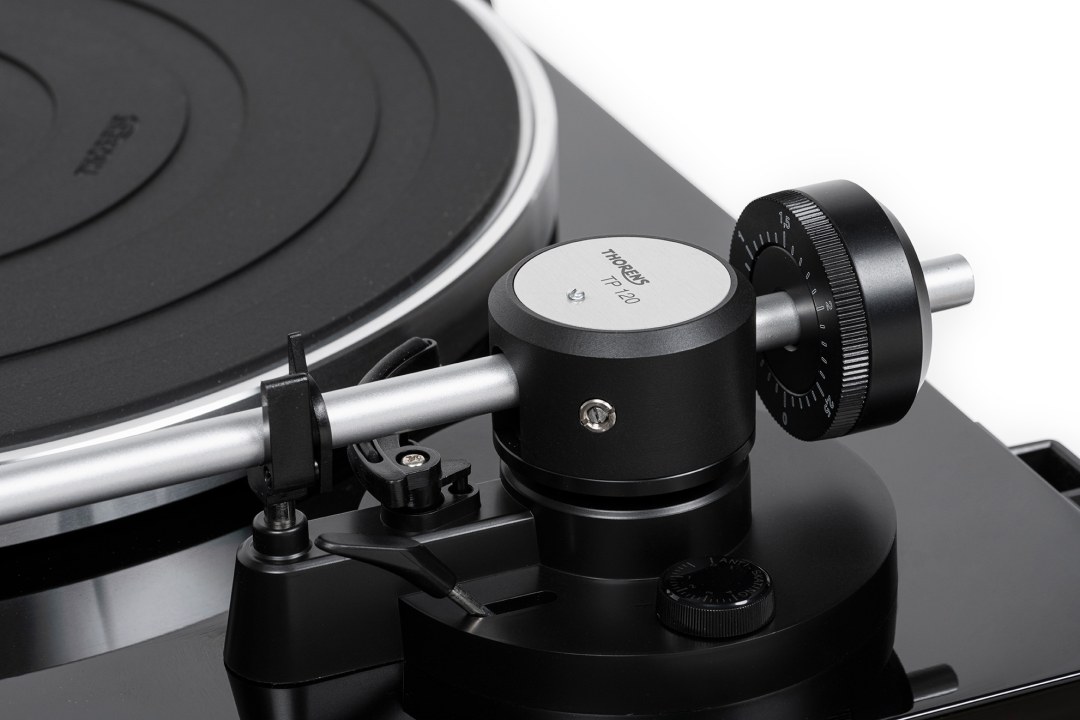 De nieuw ontwikkelde TP 120 toonarm maakt indruk met zijn hoogwaardige lagertechnologie. Door het gebruik van moderne lagers konden de lagerspeling en de wrijvingscoëfficiënten tot een voor deze prijsklasse verbazingwekkend laag niveau worden teruggebracht. De TP 120 is een echte 9″ J-vormige aluminium toonarm met een effectieve toonarmmassa van 15 gram. De visuele gelijkenis met de grotere modellen TP 150 en TP 124 is duidelijk en belooft eersteklas eigenschappen.