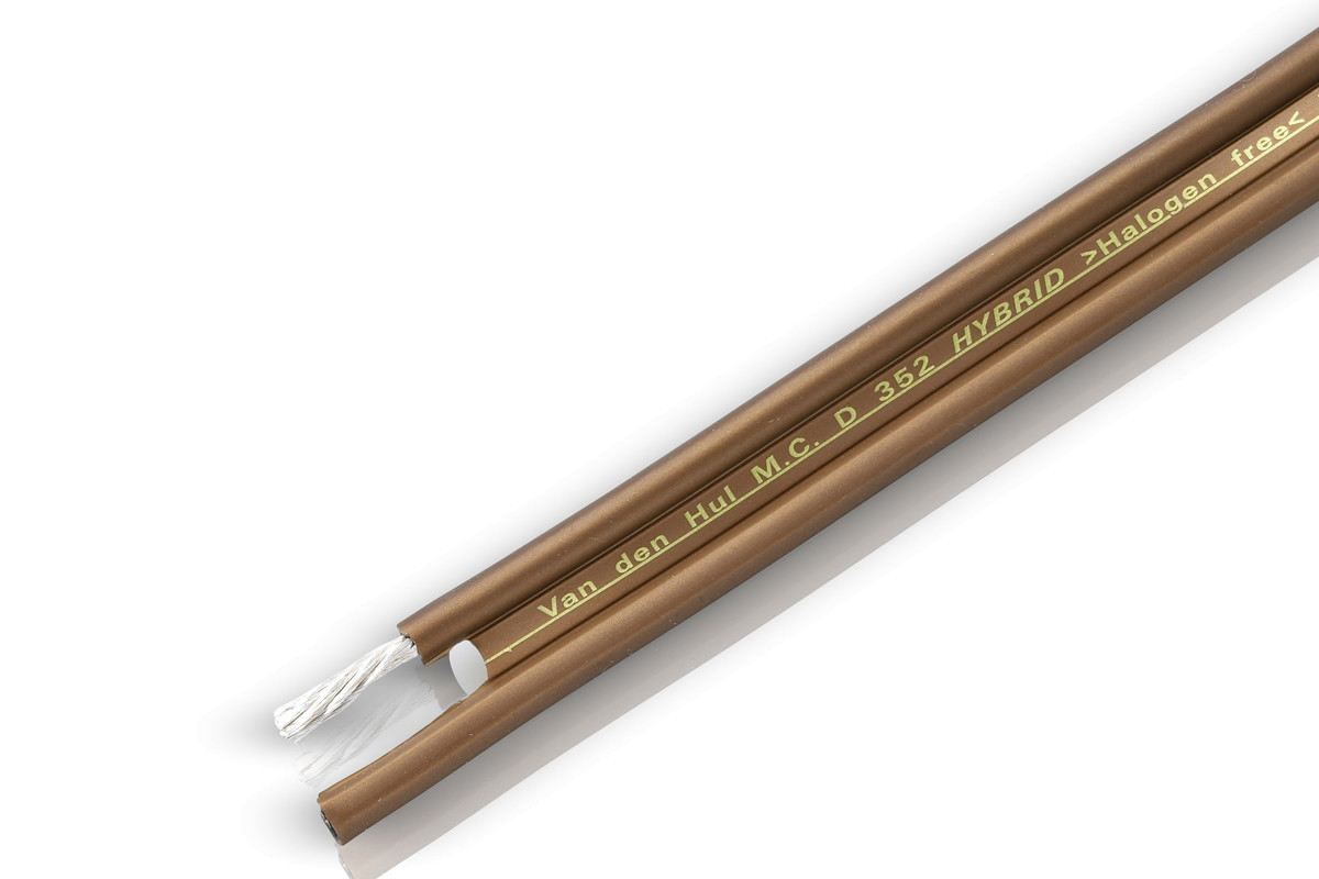 De Van Den Hul D-352 Hybrid is een twin-lead bruin metallic gekleurde luidsprekerkabel, ontworpen om een ​​zeer hoge geluidsoverdrachtskwaliteit te bieden tegen een bescheiden prijs.