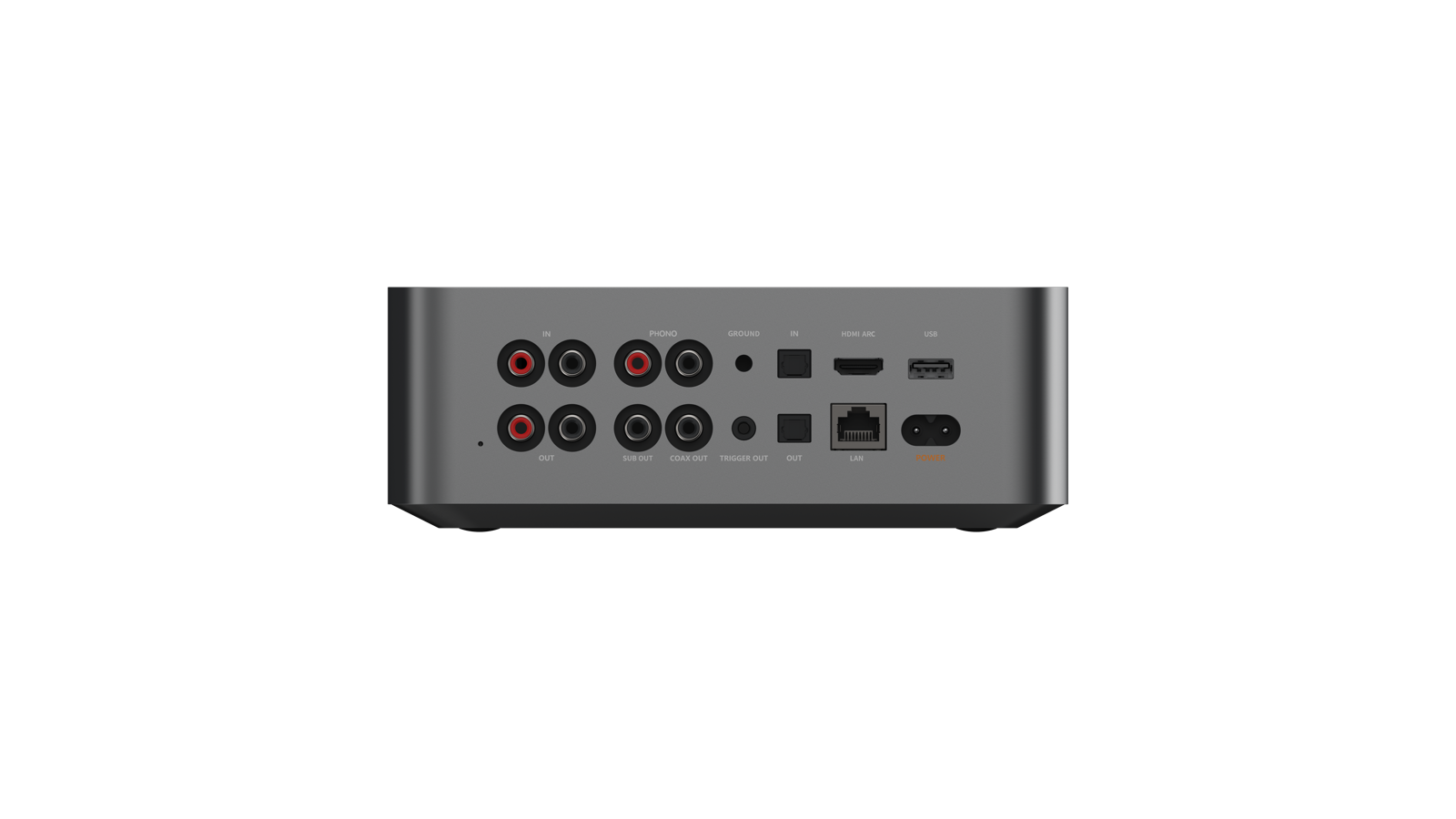 Deze muziekstreamer is ook te gebruiken als voorversterker. Ingangen / Uitgangen Een rijke selectie aan audio-ingangen en -uitgangen, waaronder HDMI ARC-, lijn-, phono- en optische ingangen, samen met lijn-, optische, coaxiale, USB-, subwoofer- en speciale hoofdtelefoonuitgangen.