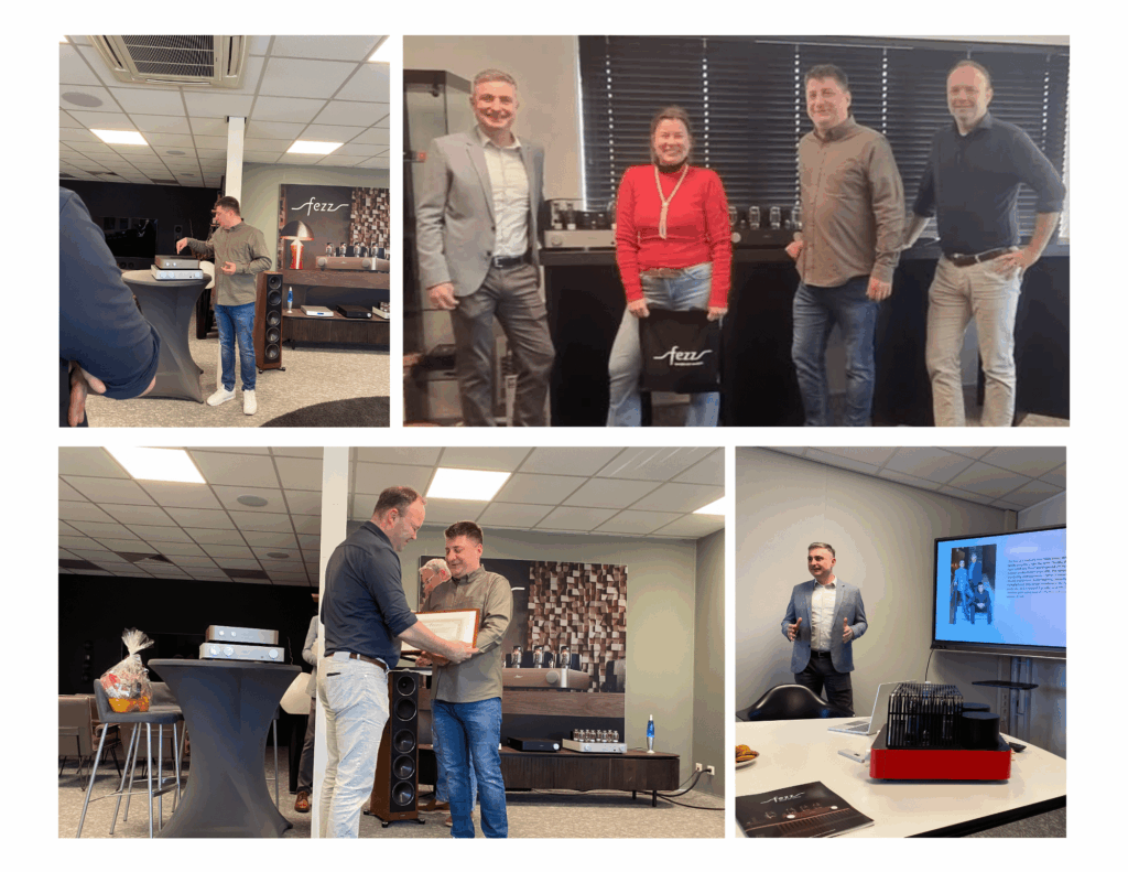 De heren van Fezz waren zelf in Nederland en Johan & Silvia van Overgaauw , hebben van Tomasz en Maciej zelf training gehad in wat Fezz zo uniek maakt. Een interessante dag. Over buizen is veel te vertellen en uiteraard draait het allemaal om het maken van de juiste combinaties, transormatoren en zo ook over hun keuze en matching van de buizen zelf. Gezien 80% bedacht en geproduceerd wordt door dezelfde familie en moederbedrijf Toroidy al jaren zelf  ringkerntransormatoren produceert met patenten, waardoor de parameters op optimaal kunnen (!) is er een nieuw product op de markt gebracht met oudere technieken maar wel naar de maatstaven van 2025. Ook het design is door het extern aangetrokken designerbureau in Polen tot een fantastisch resultaat gebracht om een goede en smaakvol  Hifi aan te kunnen bieden. Zo kunt u voor de buizen Evo lijn kiezen uit meerdere kleuren. De samenwerking met Lampizator is bijzonder te noemen en we hebben de DAC ook met eigen oren uiteraard beoordeeld. We hebben alle buizen combinaties zelf mogen beoordelen in onze eigen High End afdeling in Leiden en tijdens een workshop in april 2025 hebben we deze allemaal laten horen aan wie geinteresseert was. Buizen is altijd maatwerk, dus wie meer wilt met Fezz audio raden wij aan met ons contact te zoeken. Niet elke combinatie werkt, maar het geluid is absoluut muzikaal!